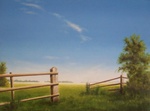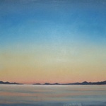 2009in dit schilderij geef ik de kleur weer die soms waarneembaar is in luchten, haast surreeel . daarnaast een grote ruimte.